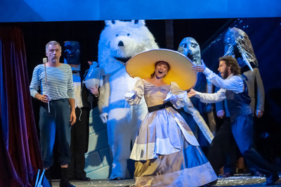 Az Aranytorkú Szarvasbikák dalárai: Darius, Vlad, Heinrich, Klaus, Itzig, Gyulai nép (köztük Itzigné), vendégek a grófnál – Csokonai Nemzeti Színház Énekkara