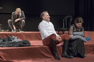 Ebben az előadásban a három nővér tulajdonképpen hat alakban jelenik meg. Hat arc, hat portré ugyanarról a három lányról: a nagyon fiatalról és arról az alakról, amivé az idő e szárnyaló lelkű, érzékeny lényeket torzította. Hol mutatkozik meg egy fiatalban a majdani öreg? Hogy bukkan elő az öregekből egy lobbanásnyi időre a fiatal, hogy aztán örökre kivonuljon az életükből, mint a katonazenekar, amely a távozó reményekkel együtt enyészik? Csehov költői szorongása így ötvöződik az élet múlásának bölcs elfogadásával.